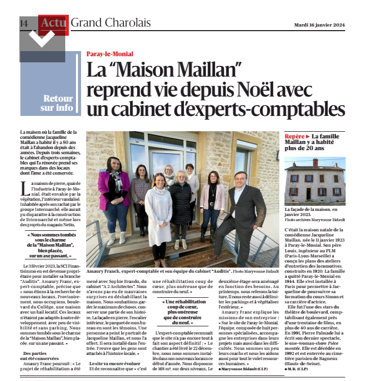 PRESSE – Paray-le-Monial – La « Maison Maillan » reprend vie depuis Noël avec un cabinet d’experts-comptables